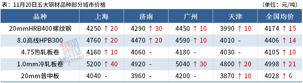 ◎ 中天鋼鐵11月下旬出廠價(jià)螺紋鋼漲130、線材盤(pán)螺漲130,帶鋼漲100。