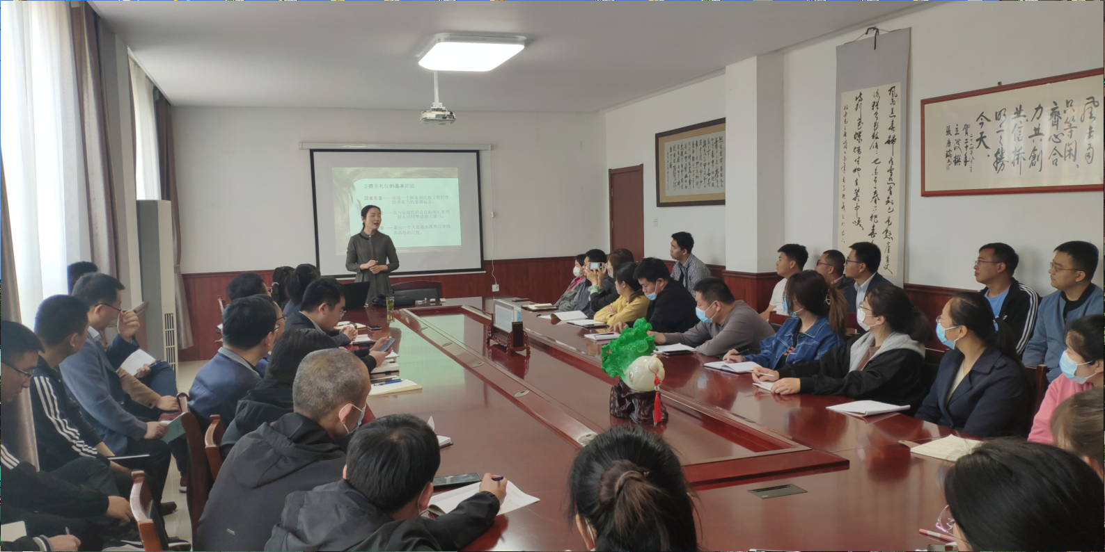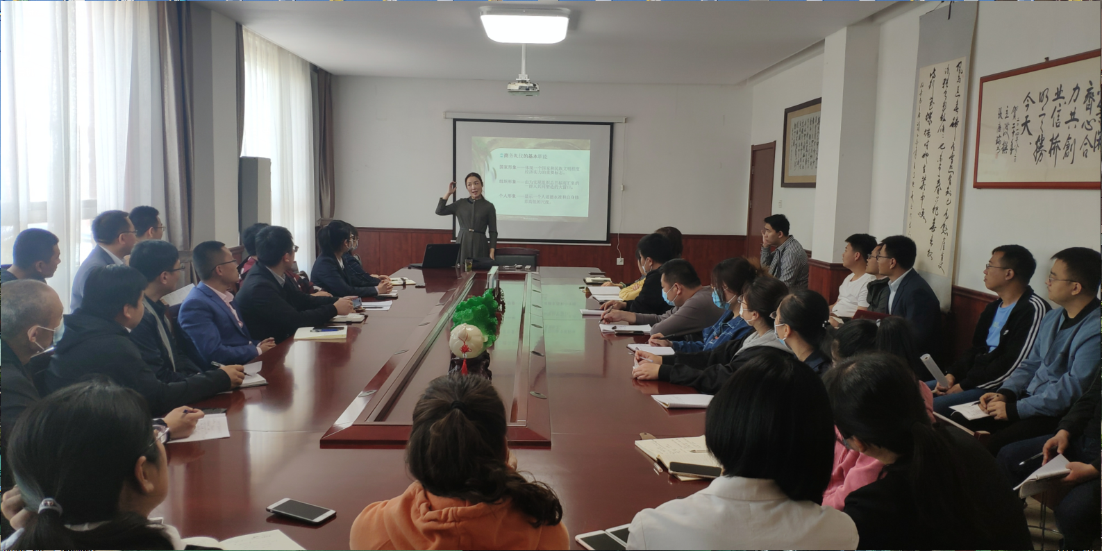 5月5號,為提高公司整體形象,提高員工業(yè)務水平,公司請禮儀老師來公司培訓,經(jīng)過老師的講解,公司開始實施全體員工著裝得體的政策,周一至周五全部著西裝、皮鞋。