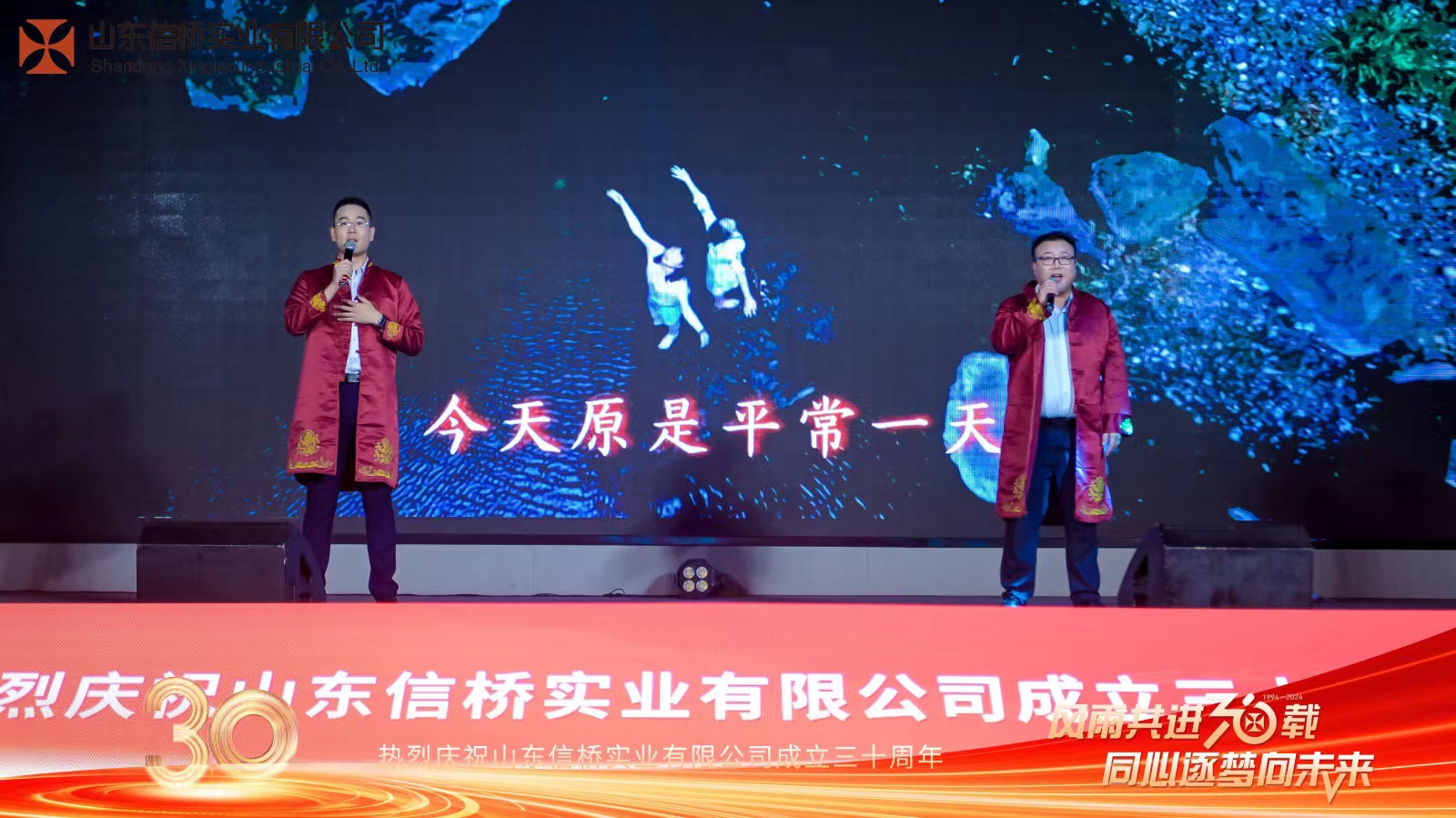 四位主持帶來詩朗誦《30而立,行穩(wěn)致遠(yuǎn)》,隨后,全體信橋員工帶來大合唱《信橋之歌》。
