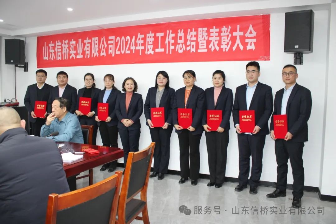 1月8日,山東信橋?qū)崢I(yè)有限公司召開(kāi)“2024年度業(yè)務(wù)總結(jié)暨表彰大會(huì)”。董事長(zhǎng)徐立波先生、總經(jīng)理徐宏女士、分公司啟航公司總經(jīng)理侯仲凱先生、鋼宇公司總經(jīng)理徐向陽(yáng)先生以及全體信橋員工參加會(huì)議。